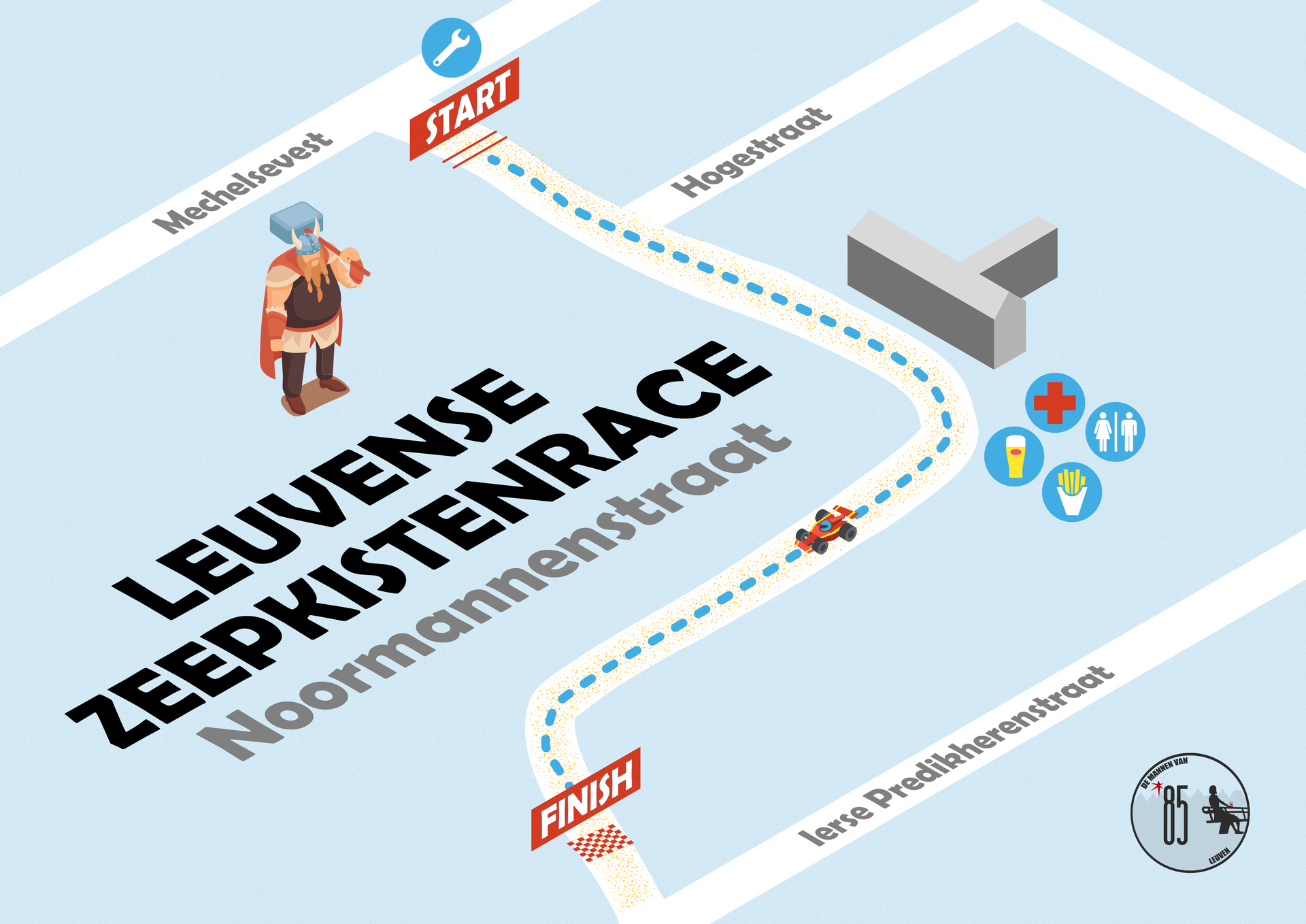 Het parcours van onze zeepkistenrace ligt in de Noormannenstraat en is in totaal 400 meter lang. Het is een recht stuk asfalt met genoeg snelheid om het spannend te maken, maar met twee uitdagende bochten die het verschil gaan maken.